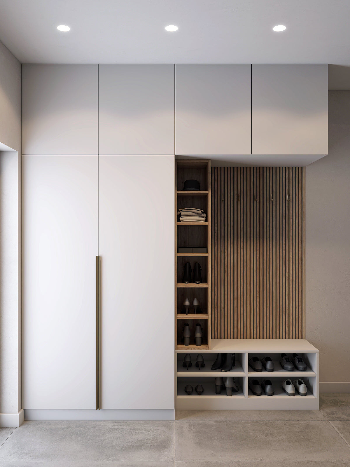 Galime pagaminti tiek minimalistinius, tiek sudėtingus, dekoratyviais elementais puoštus baldus. Deriname spalvas, tekstūras ir dizainus pagal jūsų poreikius bei prieškambario specifiką.